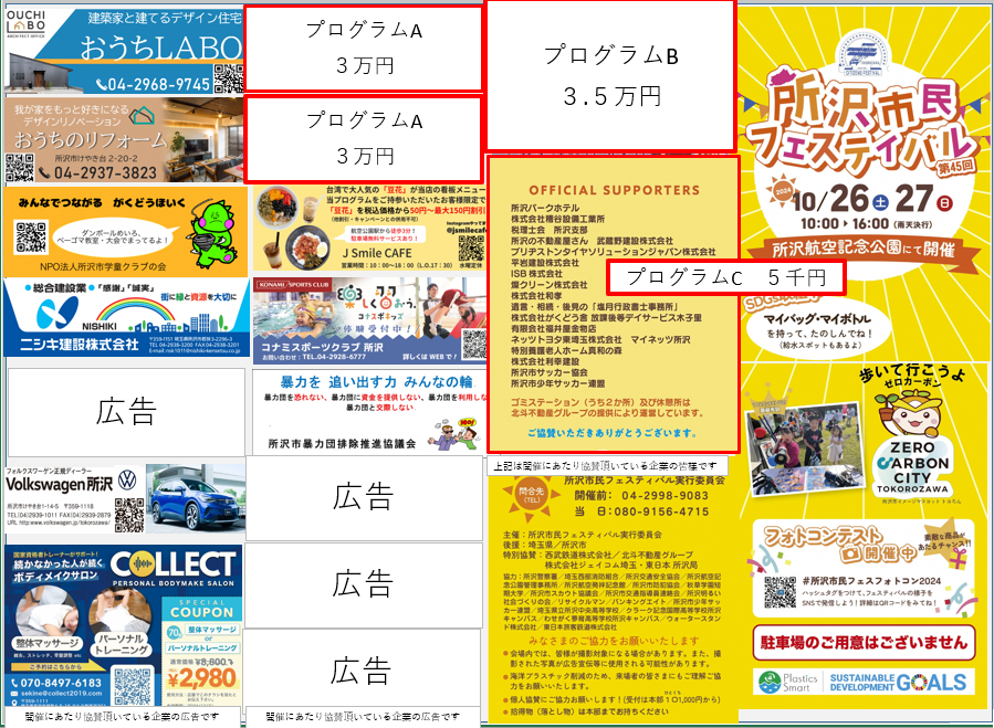 協賛一覧はこちら 広告の掲載に関するガイドラインはこちら 所沢市民フェスティバル協賛に関する取扱いはこちら