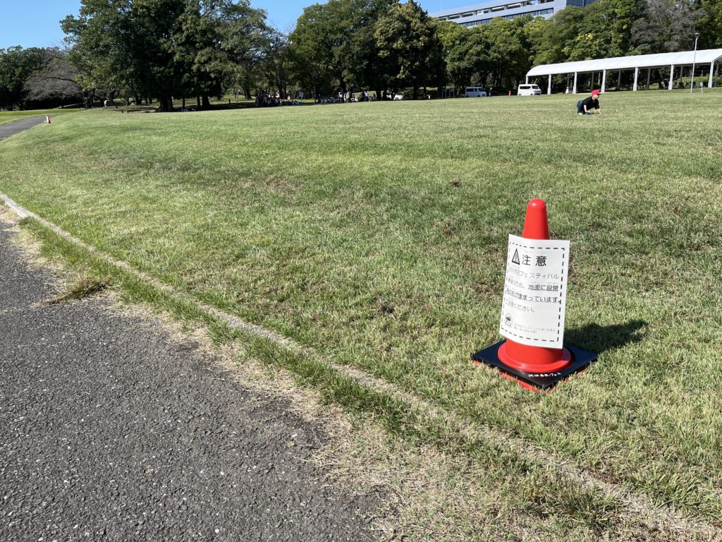 ※テントの位置の目印として芝生に杭が埋まっている箇所があります。
