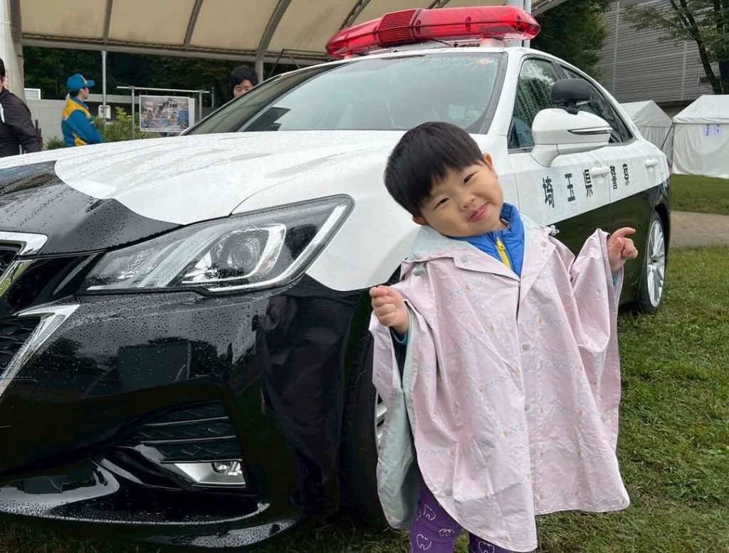 - コメント:雨間をぬって参加!大好きなパトカーとパチリ